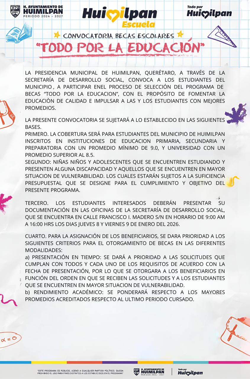 CONVOCATORIA BECAS ESCOLARES “TODO POR LA EDUCACION 2026″